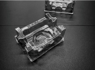 人工心肺の部品を運搬する際の緩衝材として使用する真空成型品。他の部品を傷つけないよう細かい加工があります。